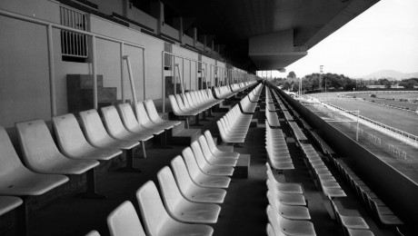 日本中央競馬会の地方場として位置づけられ、市内住宅地に位置し福島市民に愛されてきた競馬場。中山競馬場、東京競馬場の流れを踏襲し視線障害のない大屋根形式を採用している。竣工時は夏の開催が中心であったため屋外スタンドとして計画されたが、夏以外の開催が行われるようになり背面にサッシュを設けた。